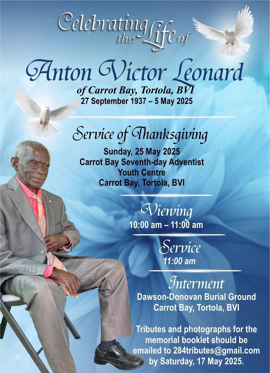 Obituaries Obituaries Click on each image to learn more about our dearly deceased. Mr. Michael Sebastian 17/01/1955 – 6/05/2025 Mr. Ashton McIntosh Baptiste 3/01/1960- 9/05/2025 Mr.Nyron Erickson 12/07/1992- 10/05/2025 Ms.Catherine E.Hannaway 25/02/1944- 15/06/2025 Mr.Ranceford Burnett 9/01/1957 – 9/04/2025 Mr. Ashton Auckland McCALL 22/04/1931 – 0/05/2025 Mrs.Mona Stout Smith 1/11/1960- 21/04/2025 Mr. Anton Victor Leonard 27/09/1937- 5/05/2025 Mrs.Helen Pierre 24/03/1966 – 29/03/2025 Mr. Aubrey Estridge 20/11/1939 – 03/04/2025 Mr.Justin Jones 20/08/1973 – 17/04/2025 Presigh Robert King 25/6/1944 – 11/12/2024 Jareem A Woodley 2/11/1948 – 9/1/2018 Joseph Roberts 7/7/1934 – 9/21/2018 Jolian Penn 6/29/1929 – 9/15/2018 Leroy Charles Frett 8/16/1936 – 9/22/2018 Let Us Lend a Helping Hand Call: (284) 499-6565 Get a Free Quote